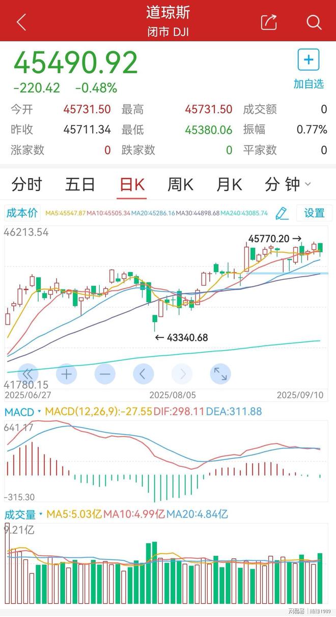1、9月10日,美股三大指数收盘表现分化。其中,道琼斯工业平均指数下跌0.48%,标准普尔500种股票指数则上涨0.3%,纳斯达克综合指数微涨0.03%。值得注意的是,标普500指数与纳斯达克综合指数继续刷新收盘历史新高。在个股方面,大型科技股多数呈现下跌态势。